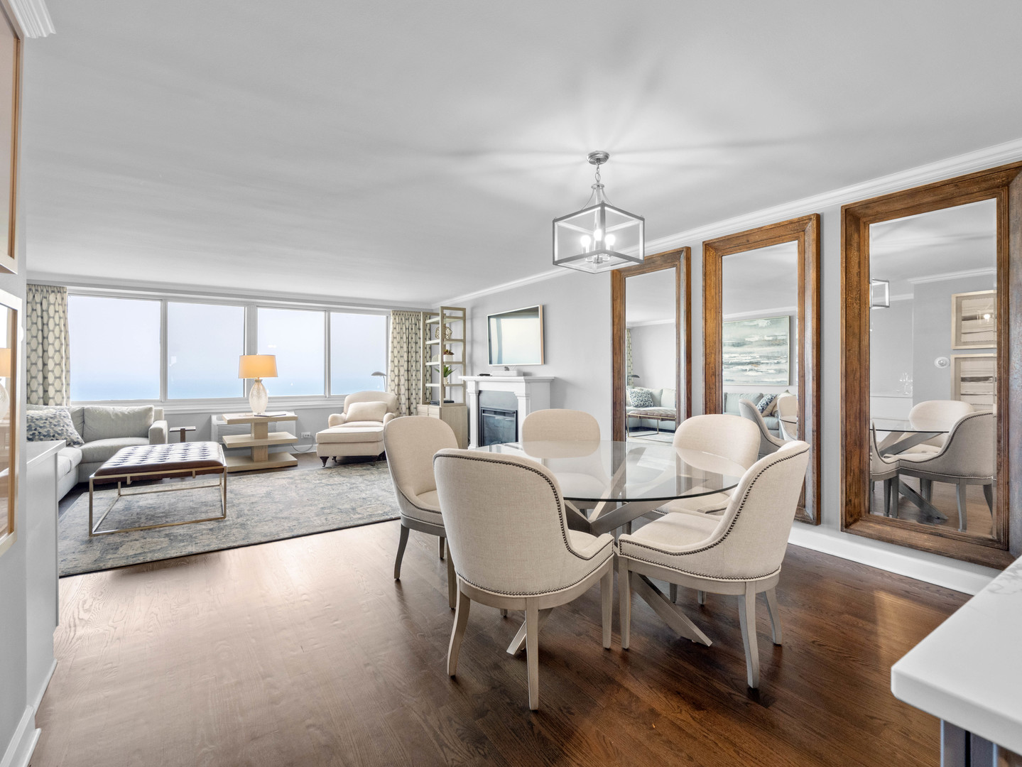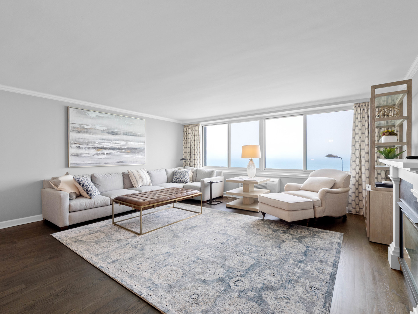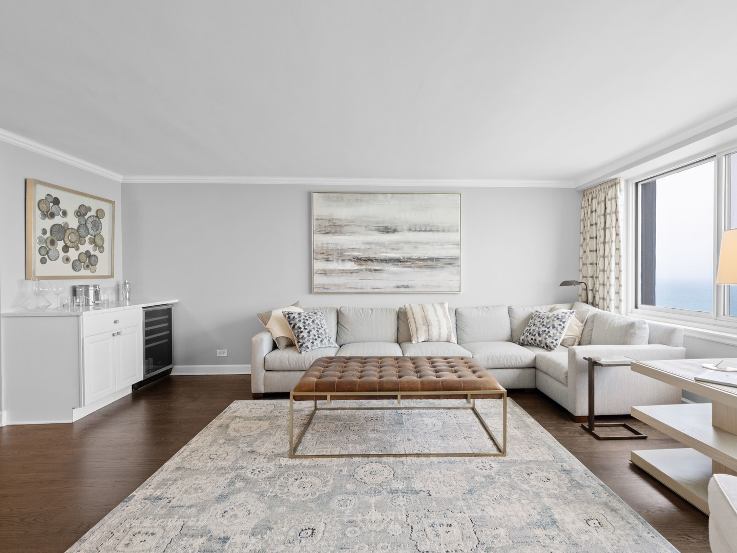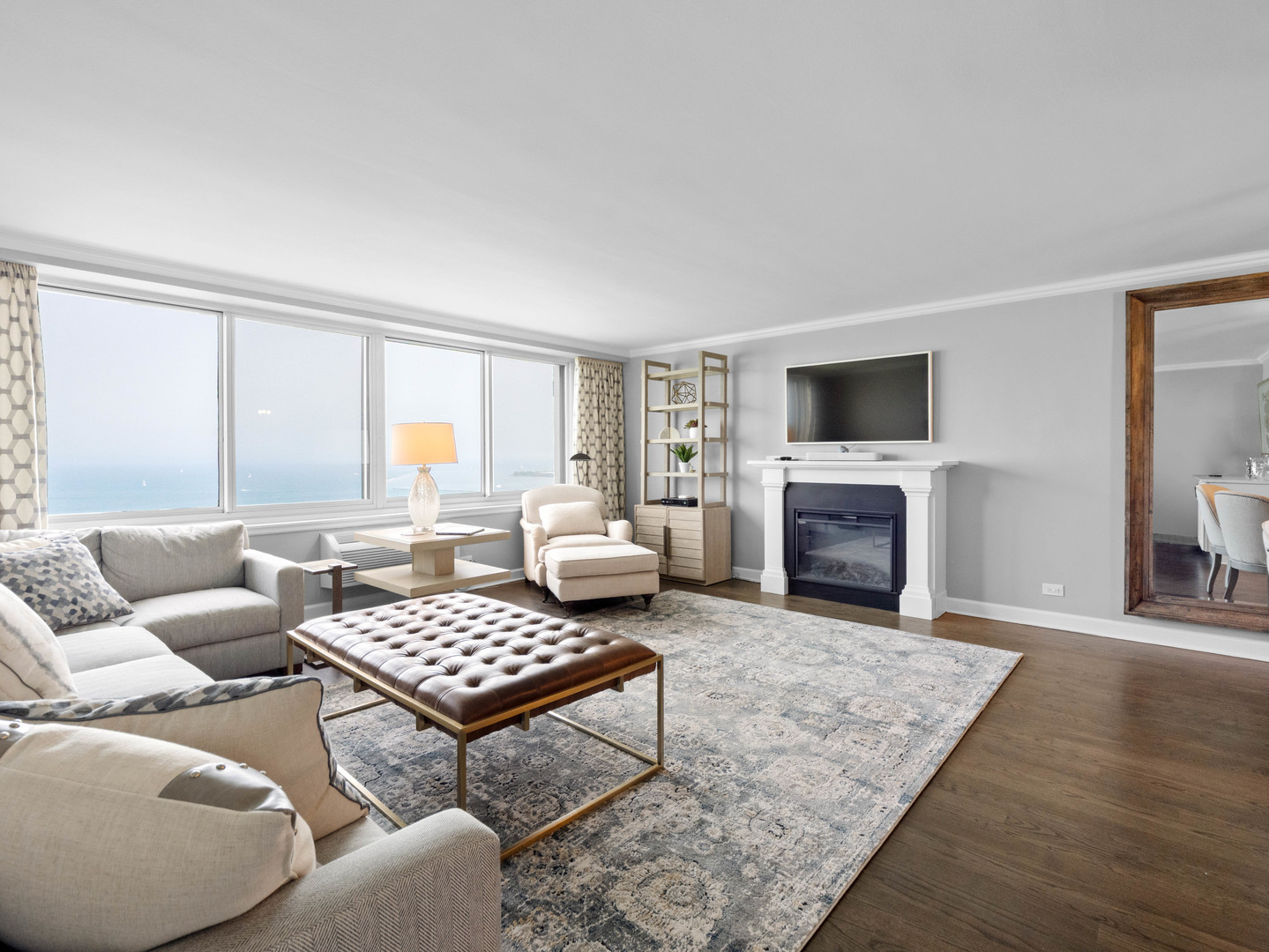 Experience the epitome of modern Gold Coast living with this fabulous fully-furnished high-floor residence at 1440 Lake Shore Drive. This 2-bedroom, 2-bathroom home spans 1,350 square feet, offering breathtaking lakefront and water views to the east, and awe inspiring sunset views to the west. This recently renovated and lightly lived in home features hardwood floors throughout, a stylish gourmet kitchen with a dishwasher, microwave, dry bar, and beverage cooler, along with in-unit laundry and ample storage. Enjoy the recently renovated amenities; expansive roof deck with skyline views, 24 hour door staff, elevator, on-site parking, gym, and pet-friendly policies. This high rise perfectly embodies luxury urban living with an address to match. And if you're looking for an in-town, this residence comes tastefully decorated by an interior designer so you can start living your best life the day you close.