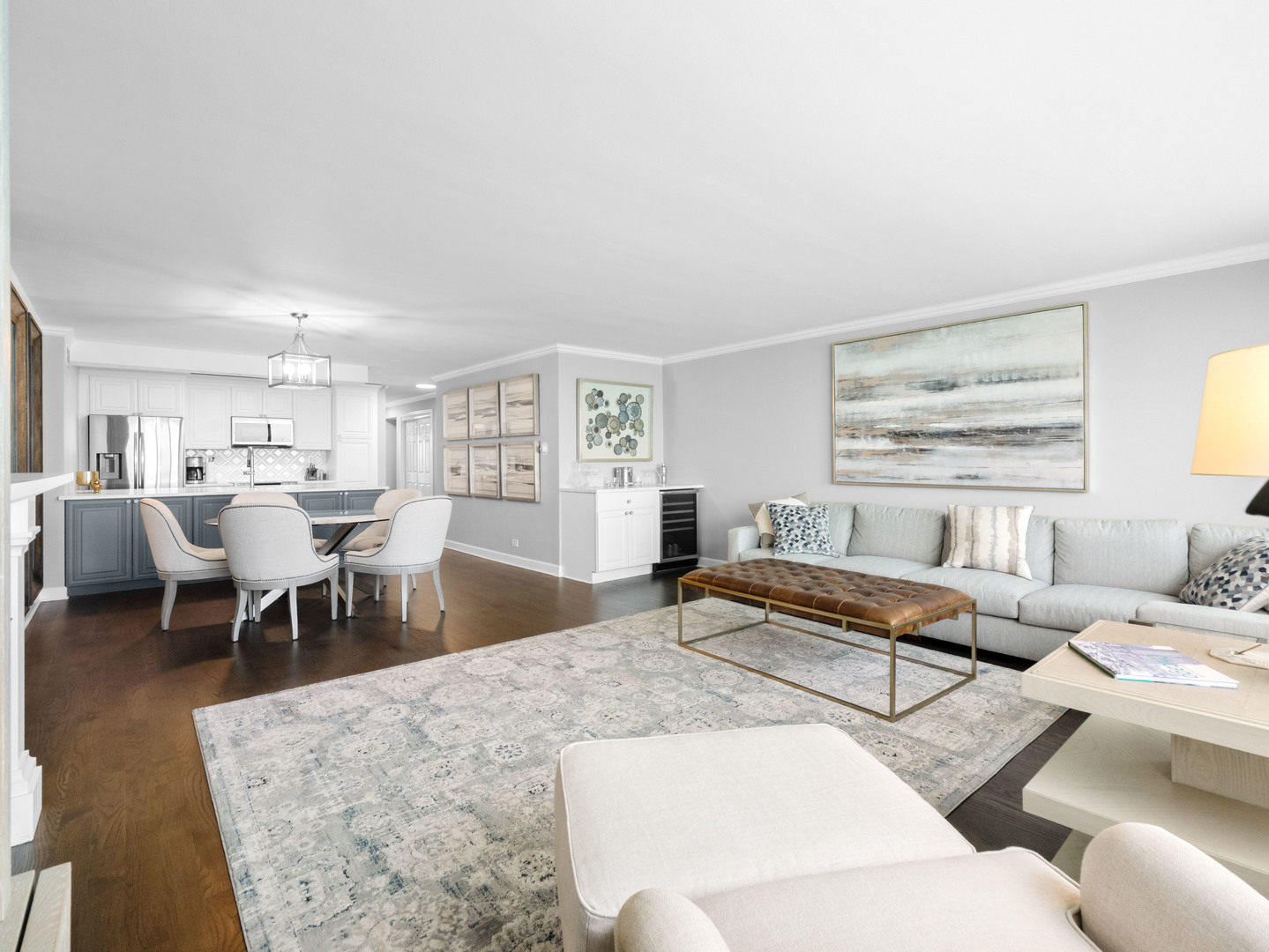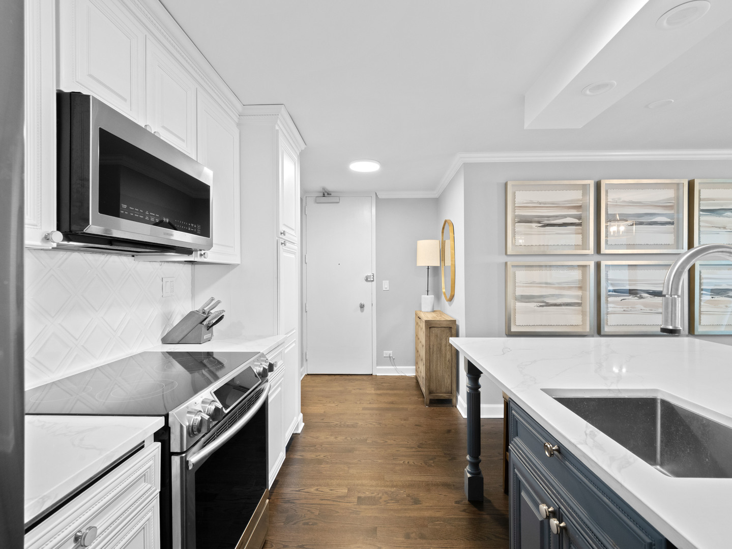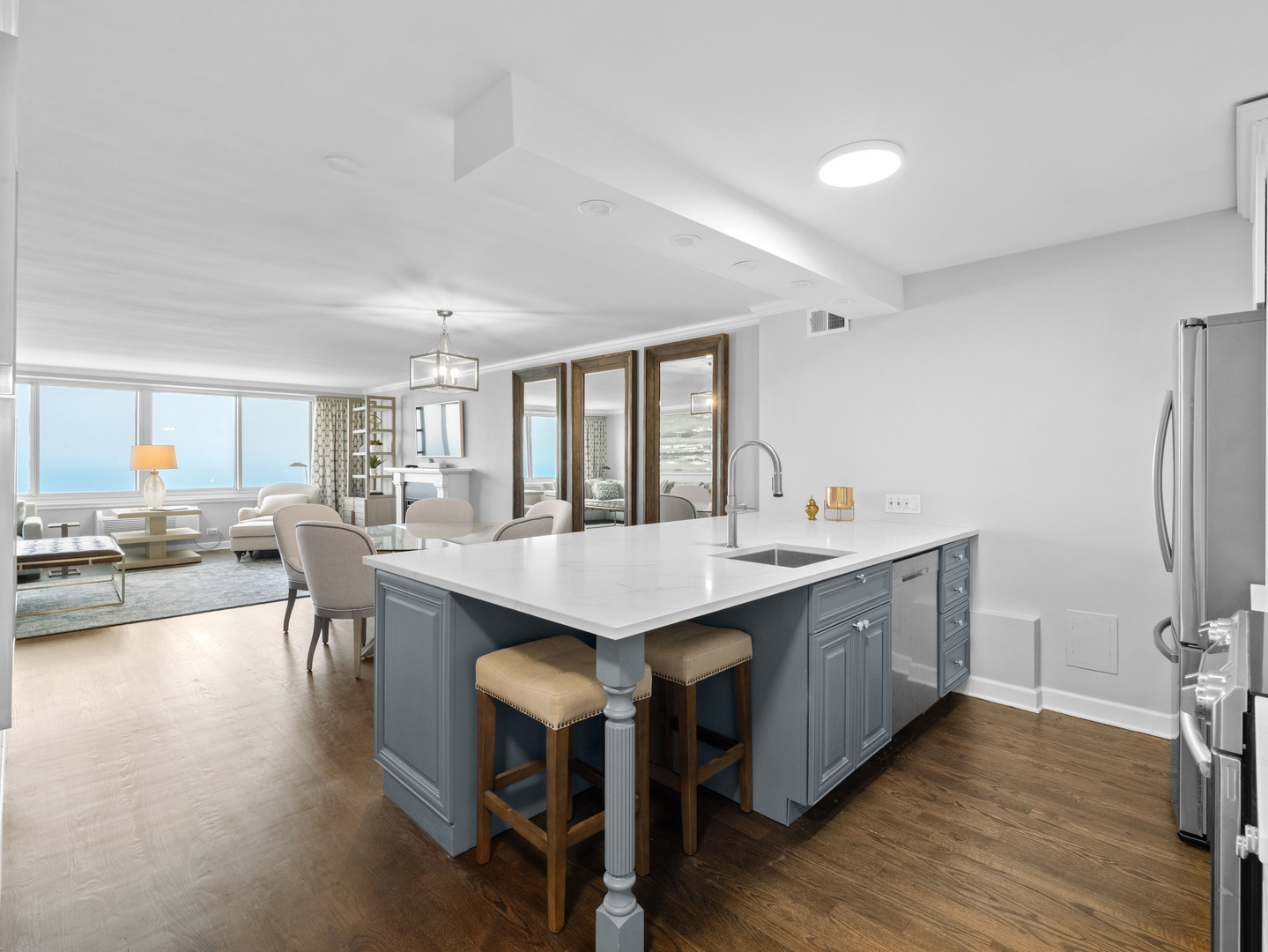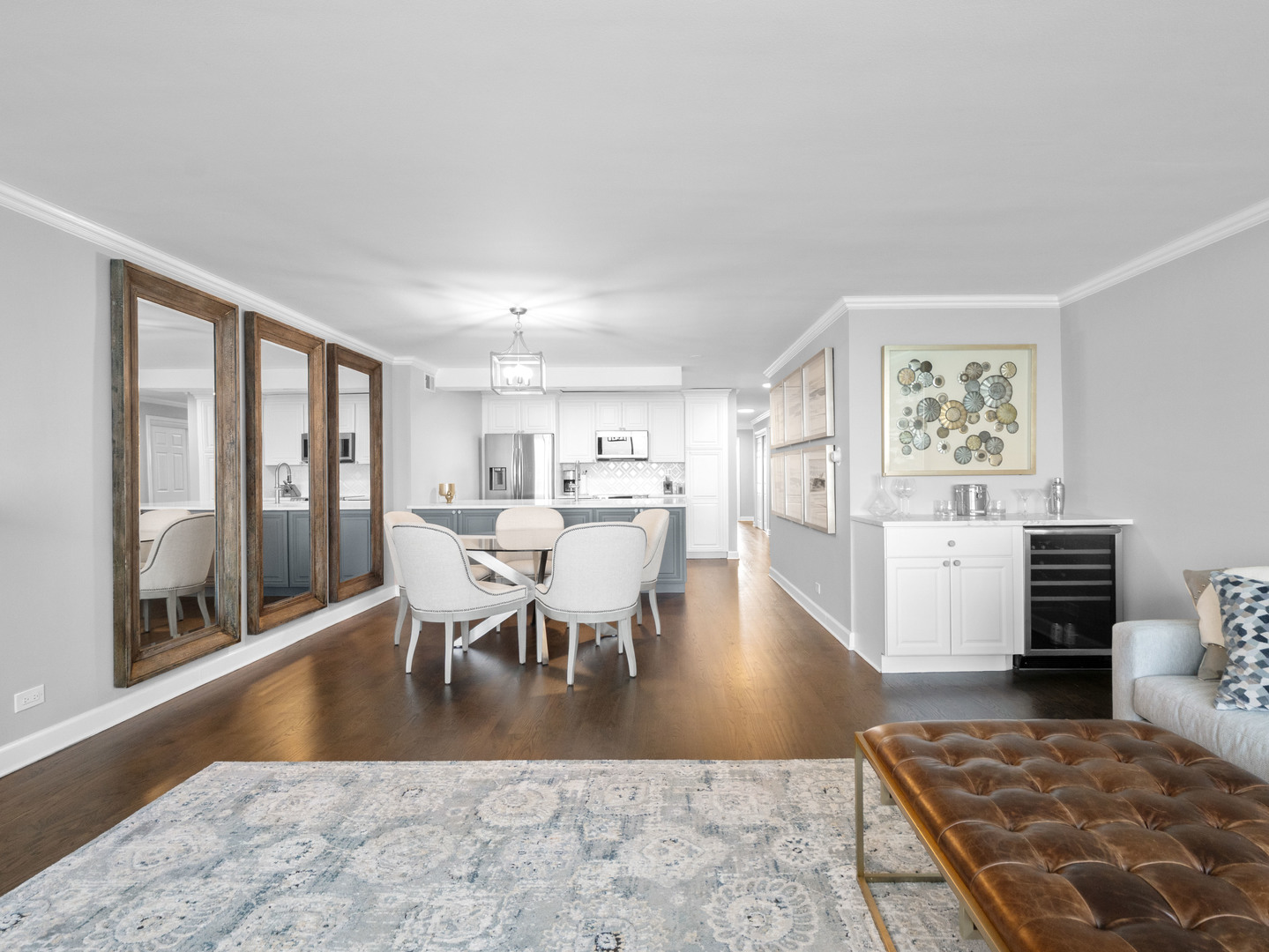 Experience the epitome of modern Gold Coast living with this fabulous fully-furnished high-floor residence at 1440 Lake Shore Drive. This 2-bedroom, 2-bathroom home spans 1,350 square feet, offering breathtaking lakefront and water views to the east, and awe inspiring sunset views to the west. This recently renovated and lightly lived in home features hardwood floors throughout, a stylish gourmet kitchen with a dishwasher, microwave, dry bar, and beverage cooler, along with in-unit laundry and ample storage. Enjoy the recently renovated amenities; expansive roof deck with skyline views, 24 hour door staff, elevator, on-site parking, gym, and pet-friendly policies. This high rise perfectly embodies luxury urban living with an address to match. And if you're looking for an in-town, this residence comes tastefully decorated by an interior designer so you can start living your best life the day you close.