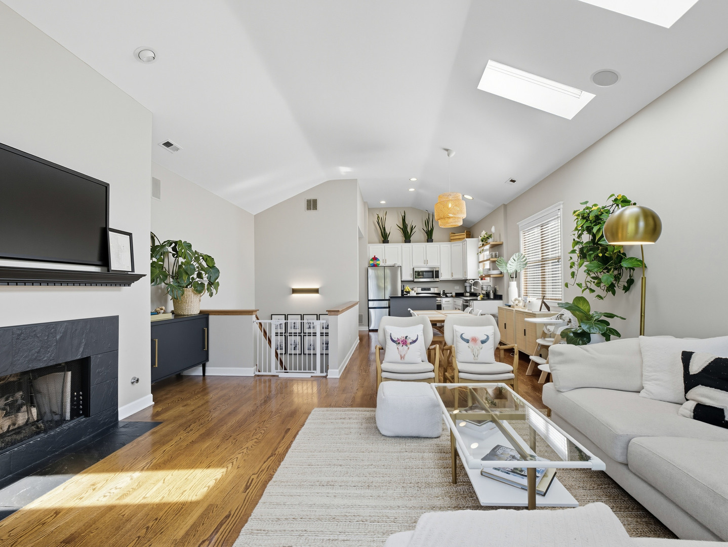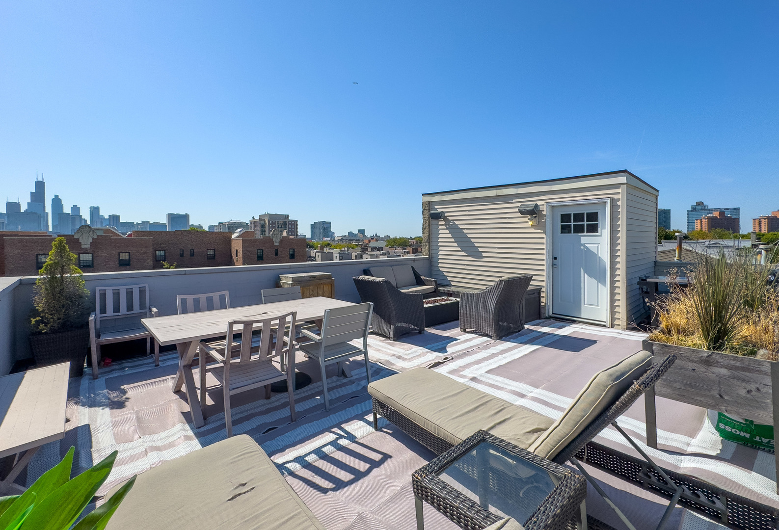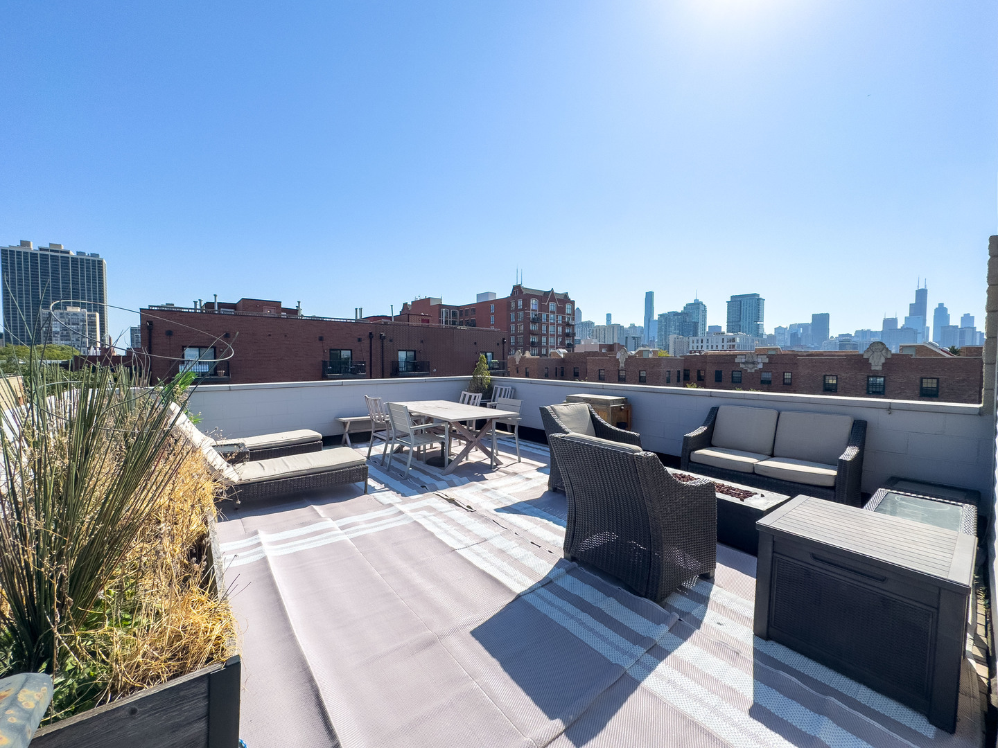 Discover this stunning penthouse rental with abundant natural light and breathtaking skyline views from the 400sqft private roof deck. The updated interior features an open floor plan with flawless oak floors, a fresh white kitchen with a dark grey island accented by new hardware, and updated appliances. Skylights and a cozy fireplace enhance the living room's charm, nestled right at the treetops in this desirable Old Town locale. The spacious master suite includes double closets and a large bath with a double vanity, whirlpool tub, and separate shower. A well-appointed guest room offers a convenient Murphy bed. Additional highlights include a brand new in-unit washer/dryer, oven, attached garage parking, a spacious storage closet, and full wiring for sound throughout the condo and rooftop. Located near the Brown and Purple Line at Sedgwick, you're just a short stroll to Wells Street for dining and entertainment. This home is a true gem and will be available 11/1. Sign for 16-18 month's and benefit from a reduced rent at 4200.