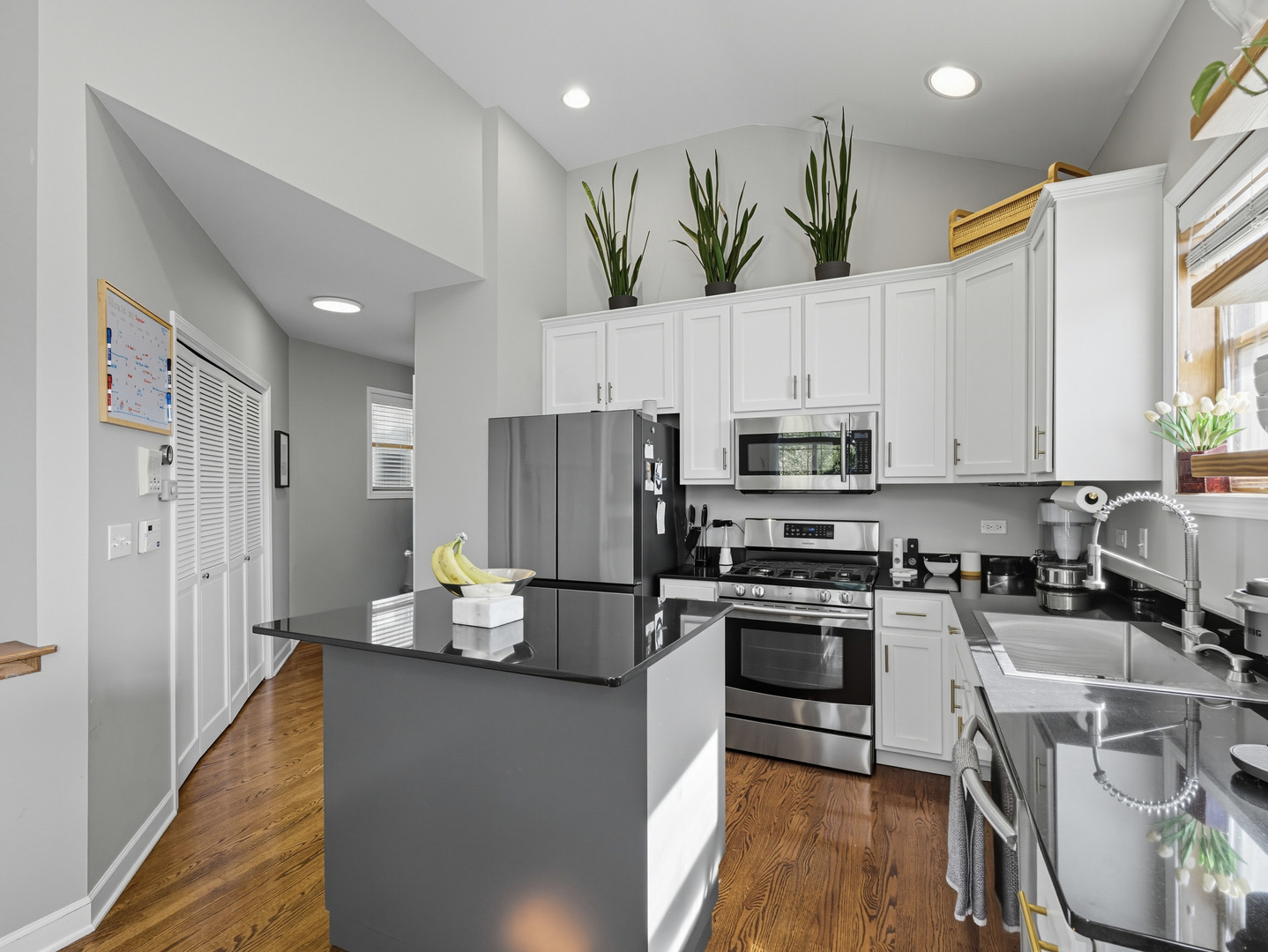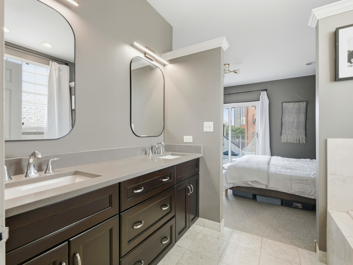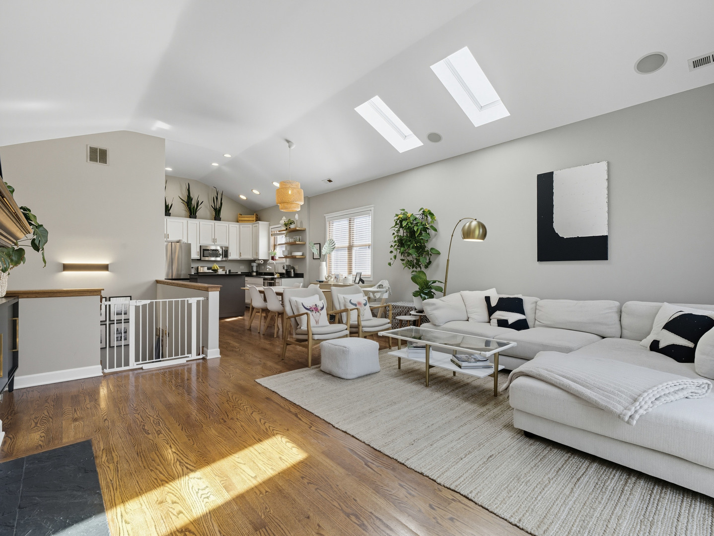 Discover this stunning penthouse rental with abundant natural light and breathtaking skyline views from the 400sqft private roof deck. The updated interior features an open floor plan with flawless oak floors, a fresh white kitchen with a dark grey island accented by new hardware, and updated appliances. Skylights and a cozy fireplace enhance the living room's charm, nestled right at the treetops in this desirable Old Town locale. The spacious master suite includes double closets and a large bath with a double vanity, whirlpool tub, and separate shower. A well-appointed guest room offers a convenient Murphy bed. Additional highlights include a brand new in-unit washer/dryer, oven, attached garage parking, a spacious storage closet, and full wiring for sound throughout the condo and rooftop. Located near the Brown and Purple Line at Sedgwick, you're just a short stroll to Wells Street for dining and entertainment. This home is a true gem and will be available 11/1. Sign for 16-18 month's and benefit from a reduced rent at 4200.