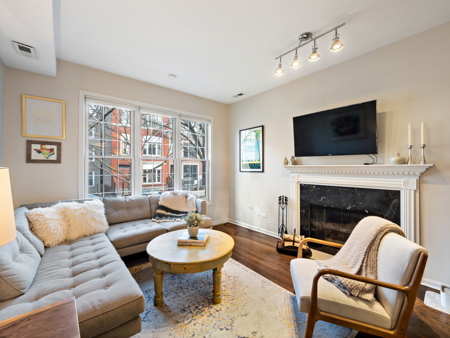 Welcome to 1531 West Walton Street, Unit 1, a move-in ready 3-bedroom, 2-bathroom condo on a tree-lined street in the heart of Chicago's Noble Square neighborhood. This open floor plan home features refinished hardwood floors, tall ceilings, and ample natural light. The kitchen offers 42" maple cabinets, granite countertops and stainless steel appliances. Amenities include a cozy wood-burning fireplace and a large back deck great for entertaining/gardening/relaxing after a long day. Enjoy the convenience of on-site parking for two cars, central AC, and a washer/dryer in-unit. Recent improvements include a newer dishwasher, tankless water heater, upgraded HVAC, fresh paint, upgraded bathroom fixtures, cellular shades throughout offering blackout in two bedrooms, and a completely rebuilt back deck. With nearby shops, several Michelin-rated restaurants, daycare centers, and nightlife along Division Street and Chicago Avenue, this centrally located urban retreat is a must-see! Enjoy easy access to transportation; just 1 block from Ashland #9 bus, 4 blocks from the Division blue line, and 90/94 right around the corner.