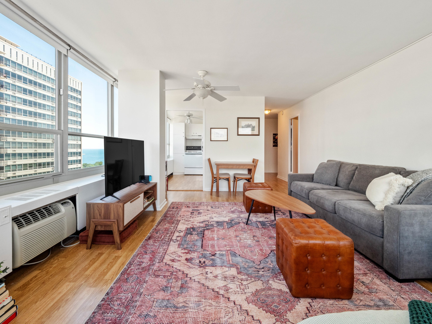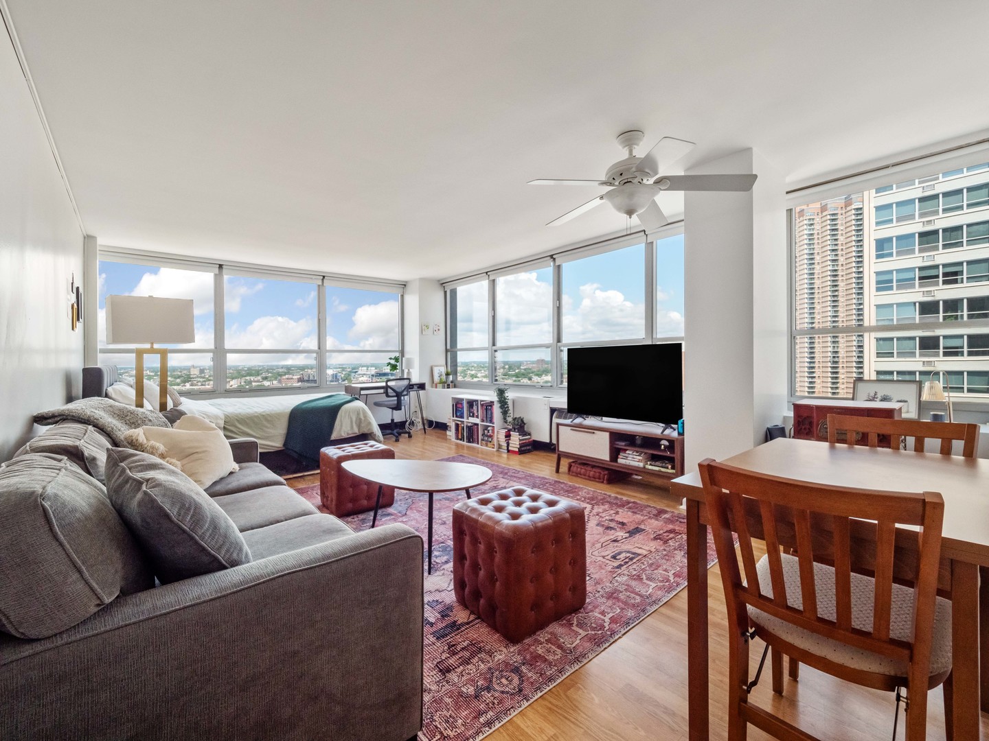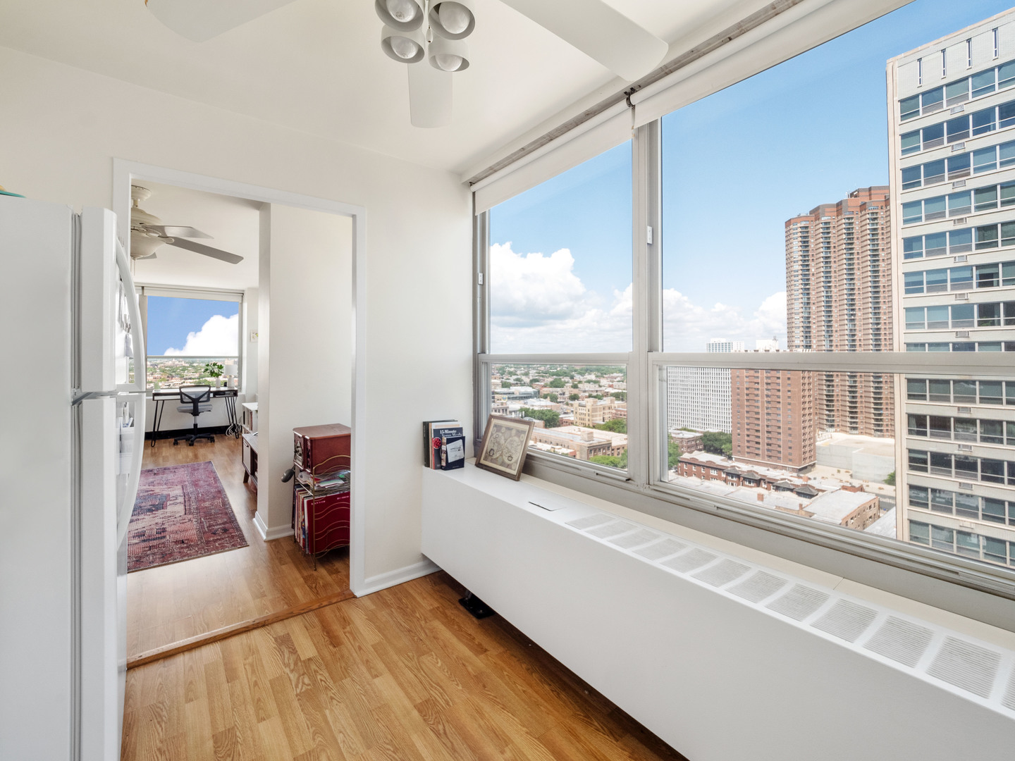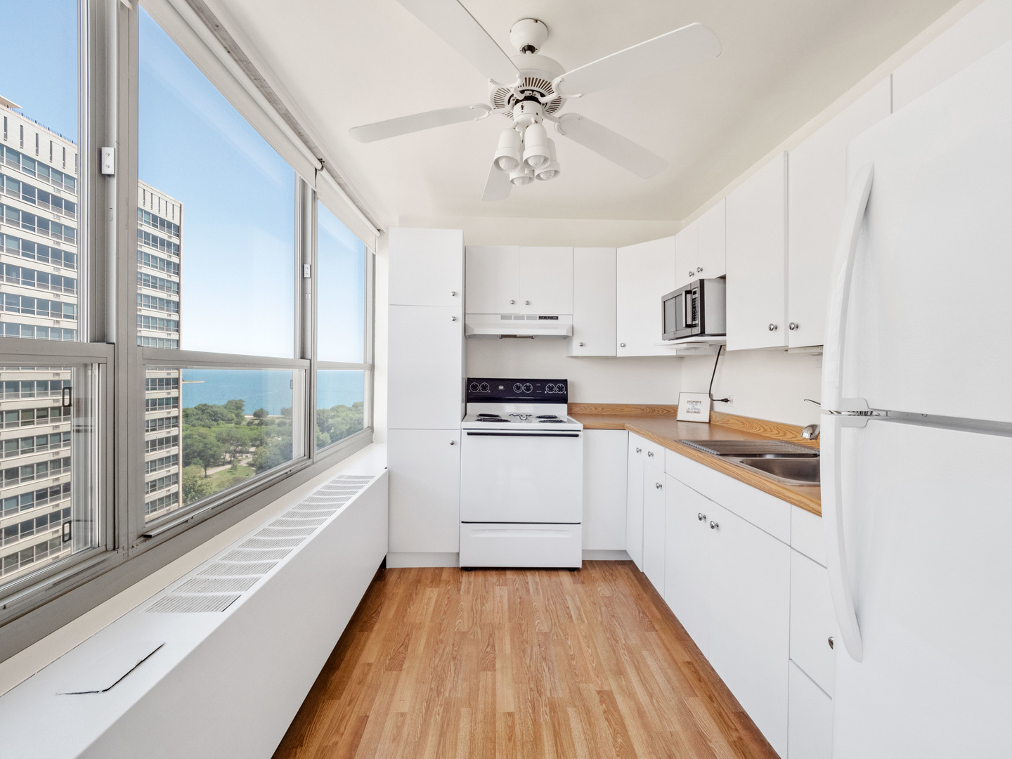 Welcome to 3550 N. Lake Shore Drive, the perfect opportunity for a first-time homebuyer! This high-floor Northwest corner sky studio boasts 11 wall-to-wall wrap-around windows, offering breathtaking views of the Lake, City & West (sunset) views. With plenty of natural light, this studio lives like a Junior 1-bedroom, providing ample space for a queen-size bed and a spacious living/sitting area. The kitchen is generously sized, featuring classic white cabinets and appliances, with room for a table for cozy meals at home. Throughout the studio, you'll find nice wood laminate floors, adding a touch of warmth and style. Storage won't be an issue with a wall of closets and a walk-in closet, perfect for keeping everything organized. The building, 3550, offers full-service amenities including 24-hour door staff, commissary, fitness room, receiving room, rooftop decks, and on-site management, ensuring convenience and comfort for residents. Additionally, valet parking is available for $150 a month. For those who rely on public transportation, you'll find it right at your front door, making commuting a breeze. And when you want to explore the neighborhood, East Lakeview and the lakefront path are just a short walk away. Please note that 3550 is a Non-smoking & No Dog building, and owners must own for 18 months before renting. *Photos were taken when the unit was tenant-occupied, showcasing the potential of this wonderful studio.*