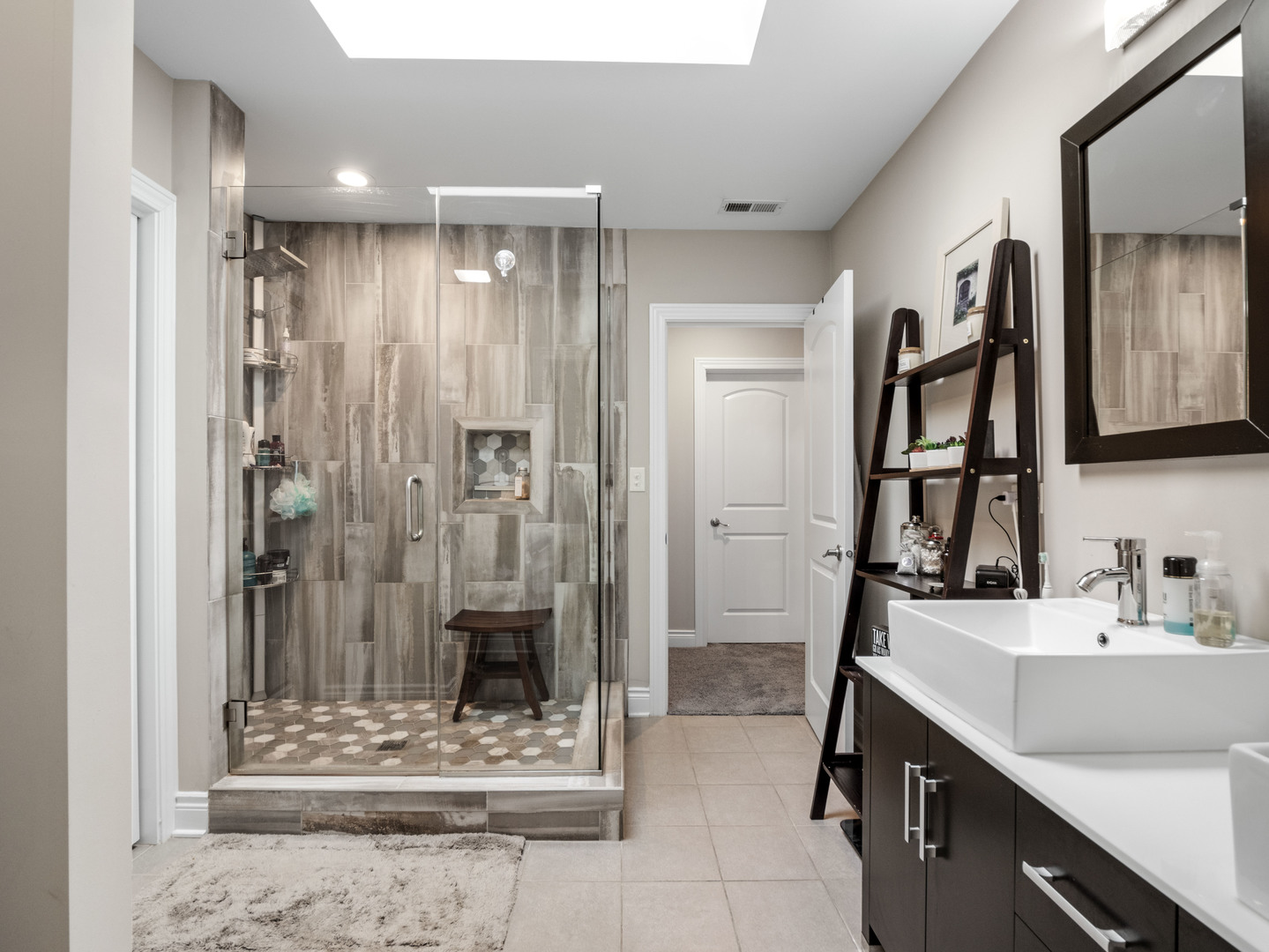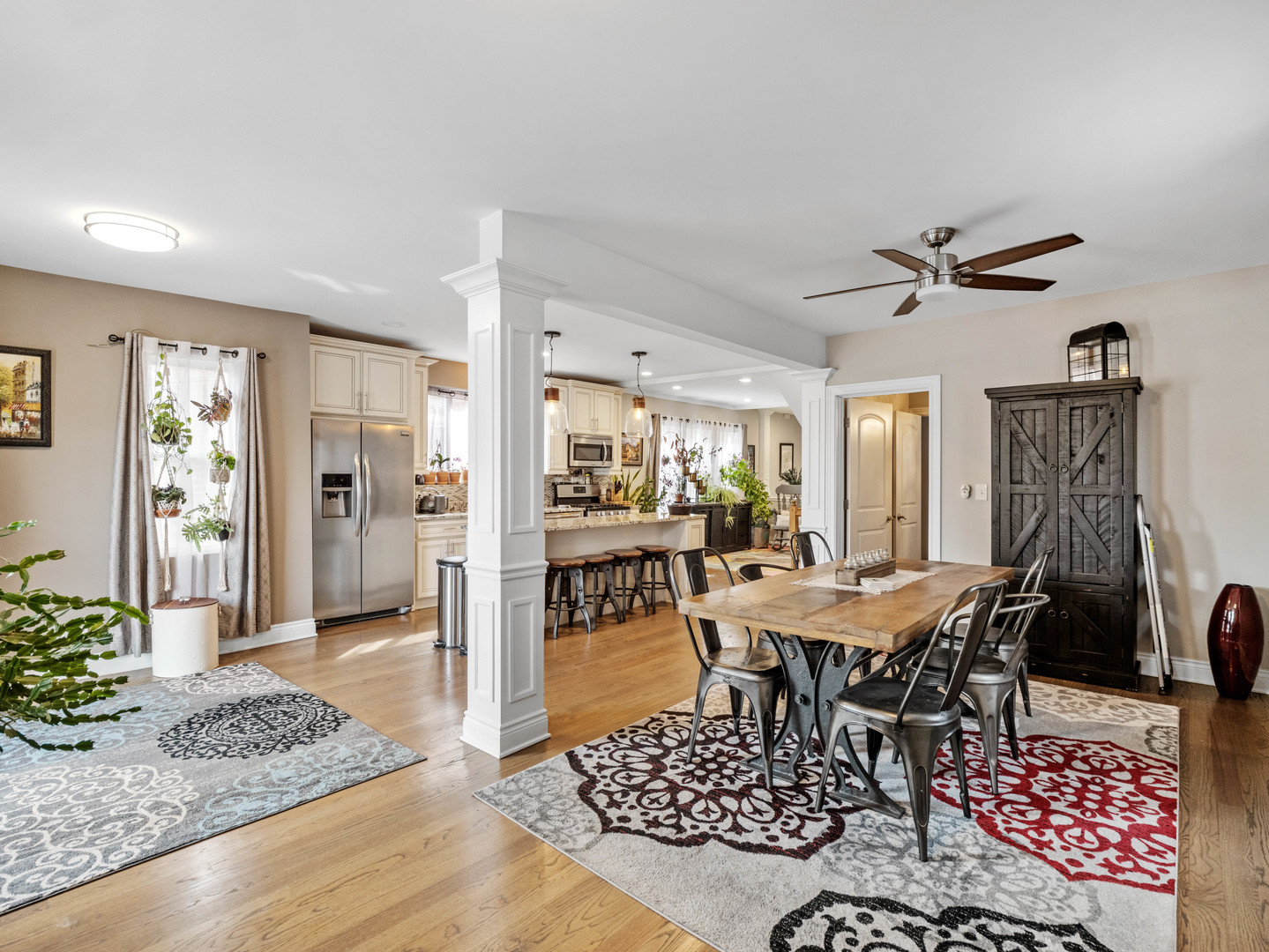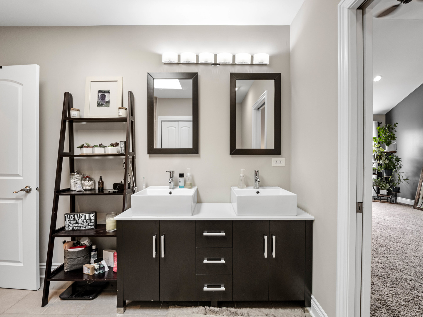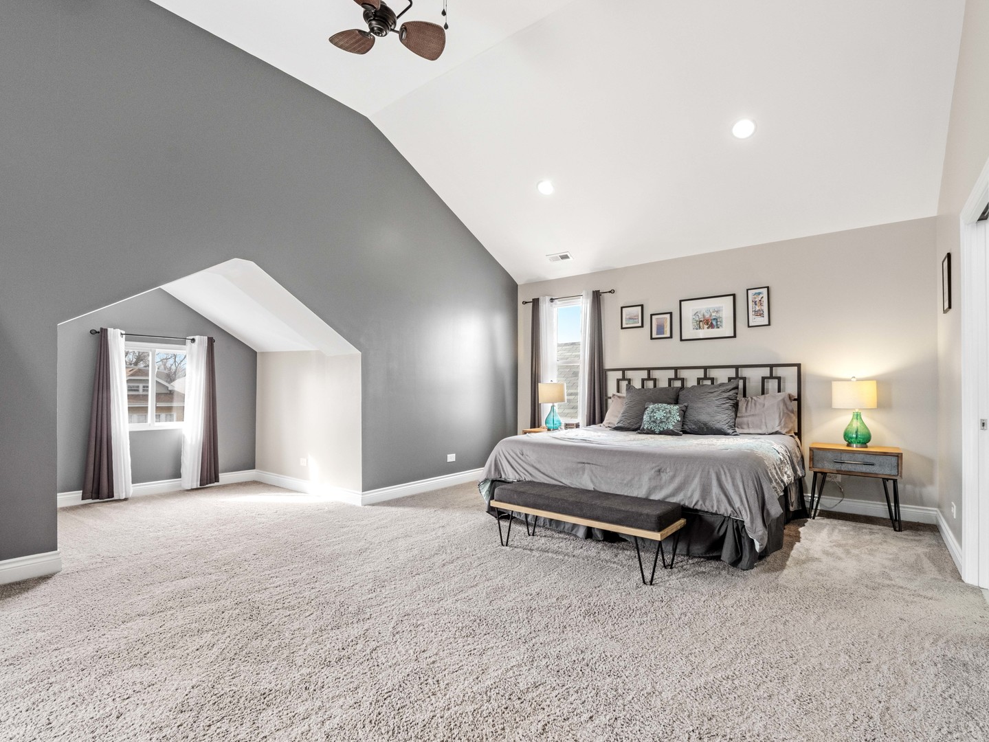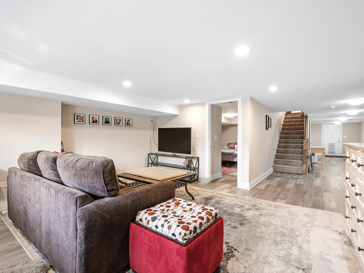 Fully renovated in 2017, this 5-bedroom, 3-bath brick bungalow with a complete 2nd-story addition offers modern living at its finest. This home features a custom kitchen with designer cabinets, newer stainless steel appliances, a granite island, and a glass tile backsplash, all overlooking a serene backyard and deck. Hardwood floors are found throughout the living, dining, and main-floor bedroom, which connects to a whirlpool bath. On the second floor, an expansive primary suite includes a skylight and a large walk-in closet. Two additional extra large bedrooms and a bathroom with double sinks complete this level. The fully finished basement offers a family room, additional bedroom, and ample storage and laundry space with new vinyl plank flooring. Step out back to enjoy a private deck and yard-perfect for entertaining. Just a 15 minute walk from the Metra stop, this well-rounded abode is calling your name. Recent updates include Furnace/AC 2024, New Gutters and Blown in Attic Insulation 2024.
