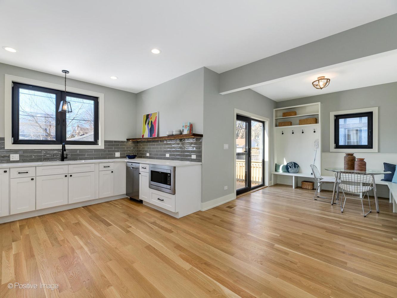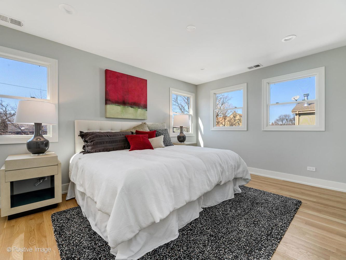 Introducing 4128 North Leamington Avenue, a sophisticated modern craftsman residence on a tree lined street in Portage Park. This home boasts 4 bedrooms and 4 bathrooms on a spacious, extra-wide, 5060 square foot lot. Step inside to be greeted with an expansive open concept living space flooded with natural light. Discover a range of high-end amenities in this home including stainless steel appliances, white oak hardwood floors, and upgraded light fixtures and window treatments. The primary bedroom features a sleek en-suite bath and a striking built-out walk-in closet, offering ample storage and organization. With three bedrooms on the second floor and a fourth on the main level, this home lends itself well to a variety of setups, whether you need a home office or a kids' playroom. A full-sized finished basement equips this home with additional living space, a full bathroom, a utility room, and lots of storage. Stay comfortable year-round with central AC, forced air, and gas heat. Outside, enjoy a private deck and a fully enclosed backyard, ideal for outdoor gatherings or peaceful moments of relaxation. This home beautifully combines modern elegance with functional living spaces. Don't miss out!